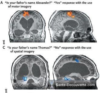 Allant plus loin, les chercheurs ont sélectionné l’un de ces cinq patients, un jeune homme de 22 ans diagnostiqué dans un état végétatif depuis cinq ans suite à un accident de la circulation. Pour ‘voir’ ses réponses sous IRM, les chercheurs lui ont demandé de s’imaginer jouer au tennis pour dire oui, marcher dans une maison pour dire non. Sur les six questions simples qui lui ont été posées (votre père s’appelle-t-il Alexandre, avez-vous une sœur…), le patient à répondu à cinq questions, avec cinq bonnes réponses. La sixième n’a pas provoqué d’activité cérébrale.